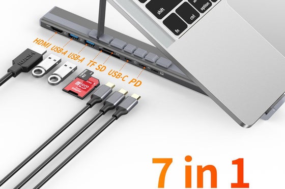 7つの機能を備えたドックと折りたたみ式のPCスタンドが一体化された7in1製品で、コンパクトなデザインでありながら持ち運びにも便利です。