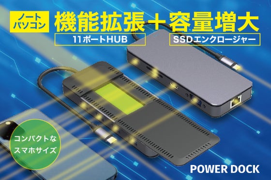 11ポートHUBとSSDエンクロージャーがひとつになって、ポート不足・容量不足を一気に解決!エンクロージャーは、SSDの中でもデータ転送速度の高いM.2 NVM...