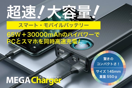 65Wの高出力モバイルバッテリー。Macbook 13インチなどのノートパソコンも余裕の充電!2つのポートで、ノートPCを使いながらスマホ、デジカメ、ゲーム機も...