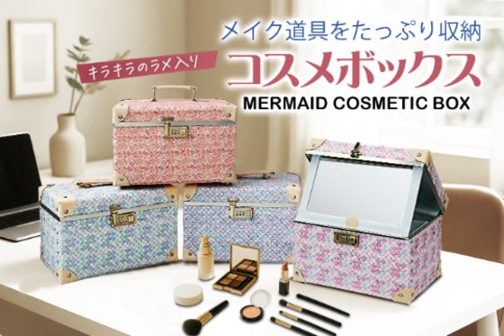 キラキラ可愛いデザイン性×使い勝手の良い機能性!毎日がときめく【大きな鏡付きマーメイドコスメボックス】毎日のメイク時間をもっと楽しく、もっと自分らしく。外でも家...