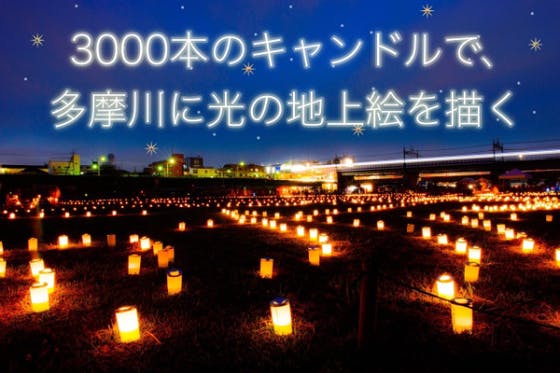 多摩川河川敷で約3000本のキャンドルで光の地上絵を描き、近隣の方々とゆるやかな雰囲気を共有したい!というイベントです。新型コロナ感染防止の観点から三密回避の小...