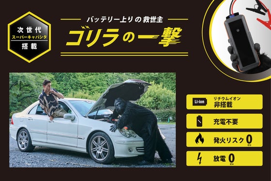 リチウムイオンバッテリーを搭載していないため、膨張や破裂の心配がなく、車内に保管しておいても安心です。使い方も非常にシンプルで、ケーブルをつなぐだけのたった2ス...