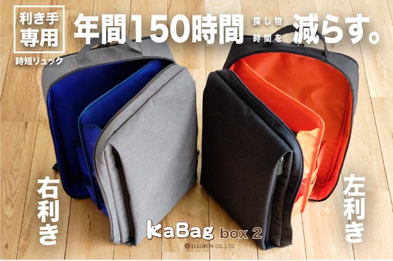 ①「バッグの中の迷子」問題を解決したKABAG boxを継承しスマートに進化。②1年で150時間もあると言われる探し物時間を減らす。整理整頓力が高まる「時短リュ...