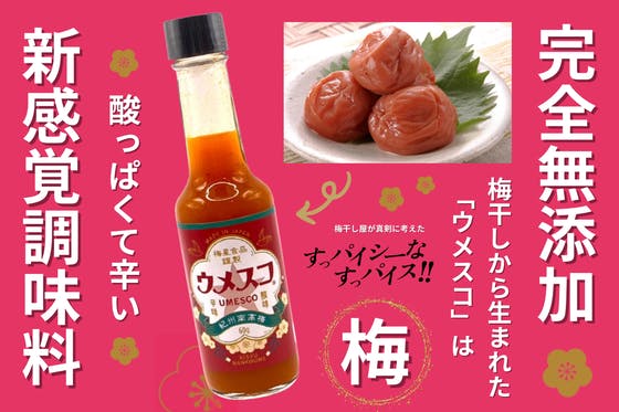 梅干しで作ったタバスコ風の辛味調味料「ウメスコ」梅の酸味と唐辛子の辛味、塩味が絶妙に調和した、完全無添加の調味料。唐揚げや天ぷら、パスタから和食まで、食卓に新し...