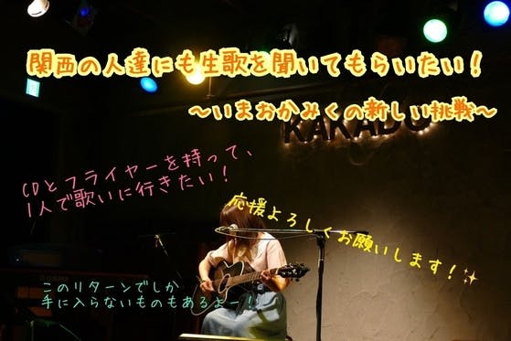 東京でライブすることが多い私ですが、関西の方に住んでいる方にもお会いして、生歌を聞いて欲しくてプロジェクトを立ち上げました!このリターンでしか手に入らないものも...