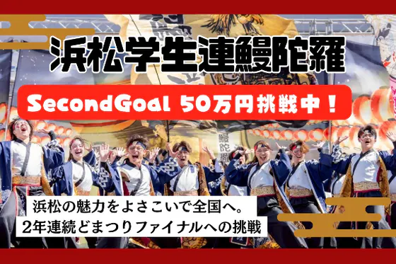 浜松市の学生を中心に活動している、浜松学生連鰻陀羅です。地元遠州・浜松の魅力をよさこいを通じて全国へ広めたい。資金不足、人数不足を乗り越え、2年連続どまつりファ...