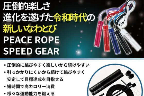 PEACE ROPE(ピースロープ)は、学校で二重跳びに苦戦し自信を失ってしまう子どもたちの悩みを解決するために、60年の縄跳び研究を基に開発されました。初心者...