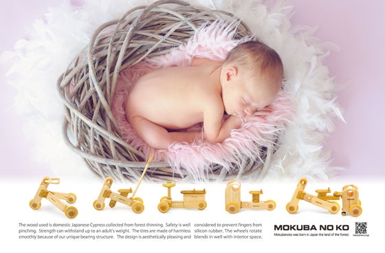 国産ヒノキを使った木製乗用玩具「木馬の子」を量産する。