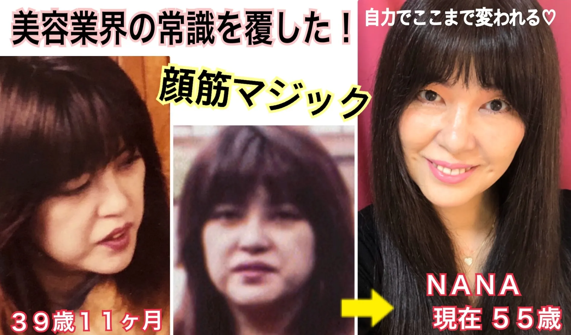 ご自分の手で美しくなるレッスン 美エイジレス塾 主宰 NANA(ナナ) 55歳 4人のシングルマザーNANA。40歳前後の時に、 加齢による「顔のたるみ」にとても悩み 女としての自信を失いかけて様々なものを試したがほとんど効果を感じず、、 ある日、フォトフェイシャルの説明を聞きに行った美容外科の院長に「あなたの顔は切らないと治らないよ」と言われて大ショックを受けました。 「このまま自分に諦めたくない」と一念発起して 自分の顔を実験台にして顔の筋トレ法を発案し、 その「顔筋NANAマジックメソッド」によって 自分の指ひとつで、たるんだ肌やシワにハリを蘇らせてリフトアップさせることに大成功したのです。 現在は、美エイジレス塾にて 加齢によるお肌の悩みを持つ女性の皆様に 私の発案したメソッドをお教えしながら美しくなるレッスンを開催。 これまでのレッスンでは3000名以上の女性達がご自分の手で美しく変身されました。 ★★★★★★★★★★★ 2006年に自分で大変身を果たした後、自身の美容法や前向きな心をブログで発信。 ブログ「エイジレス美人の作り方」 2011年から顔筋NANAマジックメソッドを皆さんが自分で自分のお顔にできるように覚えて美しくなるレッスン「美エイジレス塾」を開講。 2016年に 「4人の子持ちが41歳からエイジレス美女に!一生たるまない顔を自力で手に入れました」をKADOKAWAより出版。 2018年に 顔筋NANAマジックメソッドの顔の筋トレ法がよりやすくなり効果が高まる専用スティック「7∞STICK(ナナムゲンスティック)」を発明、販売開始する。 2019年には顔の筋トレの相乗効果が高まり日々のスキンケアとしても使えるコスメ「千の光」シリーズを発売開始。