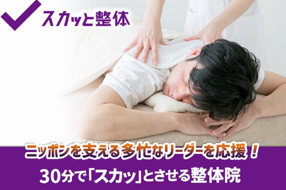 中小企業の経営者、個人事業主の方など多忙なニッポンのリーダーたち。 そんな方たちのために、短時間(30分)の施術で効果が出る整体院を作ります。 スカッと整体...