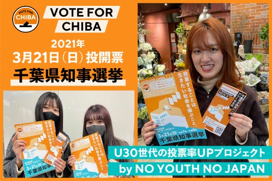 【3月21日投票日】「千葉県知事選挙でU30の投票率を18%から60%に」を目指すプロジェクト「VOTE FOR CHIBA」。千葉県の大学生を中心に約30人が...