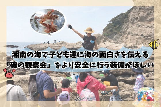 子ども達に身近な海の面白さ、そこに住む生き物の多様性を知ってもらうため「磯の観察会」を湘南江ノ島で、定期的に実施しています。子ども達がより安全に参加できるよう、...
