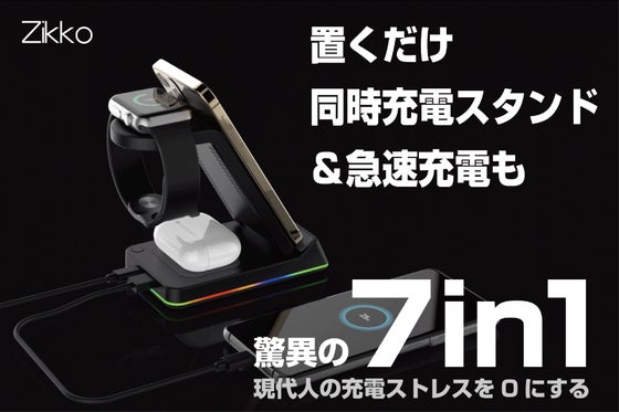 スマホ・ガジェットの充電ストレスを0に!?驚異的な7つの機能で、4台同時充電(Qi対応ワイヤレス/最大15W急速充電)を実現。可動式&コンパクトでアラーム時計や...