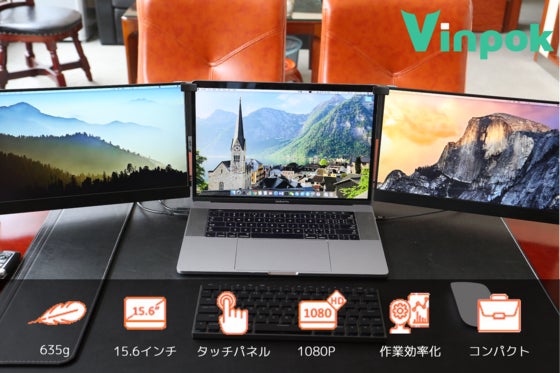 どこにいても最高な効率で作業ができる、最軽量タッチパネルモバイルモニター「Vinpok Sprit」のクラウドファンディングです。