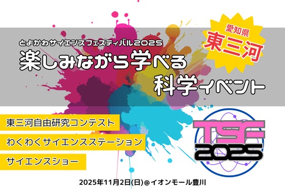 2025年11月2日、愛知県豊川市のイオンモール豊川にて「とよかわサイエンスフェスティバル2025」を開催します!東三河地域の子どもたちが科学に触れ、楽しみなが...