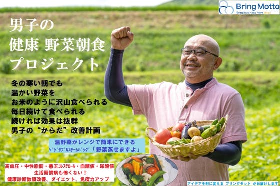 蒸し野菜朝食による男子の”からだ”改善計画を実現するプロジェクトです。ベジタブルスチームバック「野菜蒸せますよ」を使って 簡単に楽々 毎朝沢山野菜が食べられます...