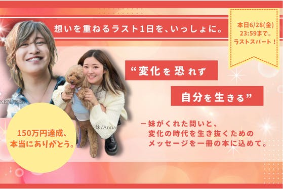 私が四半世紀生きてきた証や資産を提供し、心の在り方を伝えて自分の人生を歩むための助けとなる本を作ります。それによって自分の名前の由来でもある「名を遺す」ことを実...