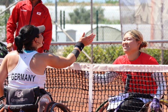パリパラリンピック車いすテニス女子ダブルスに於いて金メダルを獲得した田中愛美と2大会連続5位入賞の高室冴綺が練習していたコートを国際大会と同様のハードコートで練...