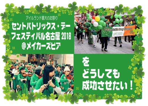 アイルランド最大のお祭り「セントパトリックス・デー」!ライブ、パレード、マルシェイベントなどを名古屋「メイカーズピア」で開催します。世界中で盛り上がるこのイベン...