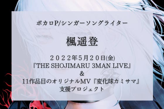 ボカロP/シンガーソングライター楓遥登 2022.05.20 「THE SHOJIMARU 3MAN LIVE」に出演します。 歌と演奏で日々の生活で疲れた...