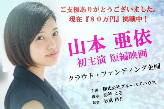 映画「きみの鳥はうたえる」、「ドンテンタウン」や、ドラマ「トドメの接吻」などに出演している山本亜依(女優)の初主演短編映画製作プロジェクトです!皆様のお力をお借...