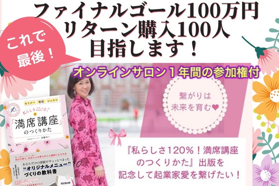 女性集客プロデューサーの加藤あいです。12/24に初の単独著書『私らしさ120%!満席講座のつくりかた』を出版します。満席になる礎のひとつに「人とのつながり」が...
