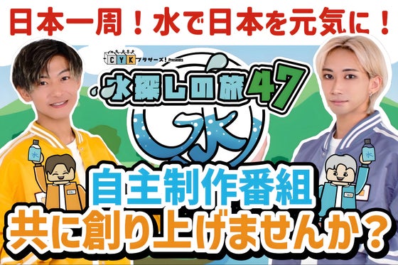 『水探しの旅47』と題し、我々CYKブラザーズ!が全国各地47都道府県に隠された幻の名水を調査、探索、探し求めていく奮闘冒険企画番組を自主制作中!水を通して、そ...