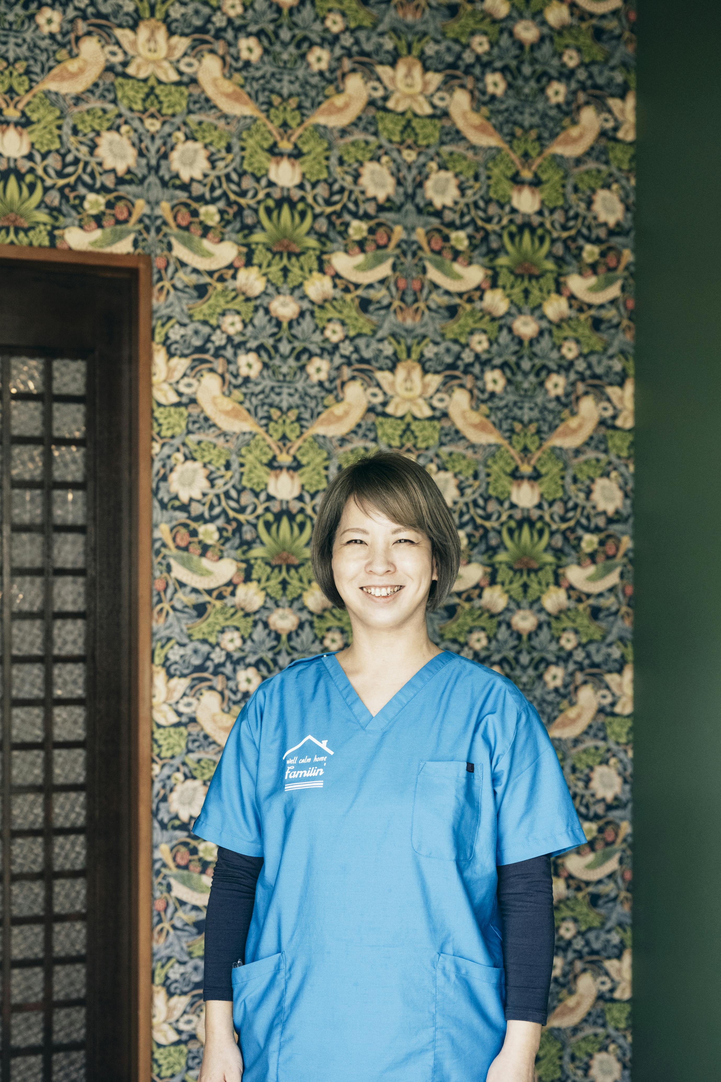 医療ケアつき重度障害者グループホーム ファミリン、就労継続支援B型トイロハンドワークス、障害者の衣服製作をおこなう一般社団法人ReFRELの代表。福祉ナースを育てる会 会長。 准看護師。