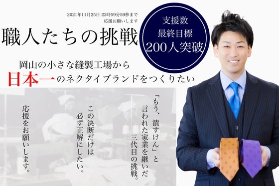 小さな町工場から日本一のネクタイブランドを作る。無理だと言われたこともあります。でも私たち職人は本気で夢をみています。課題は「知られていないこと」。日本のネクタ...