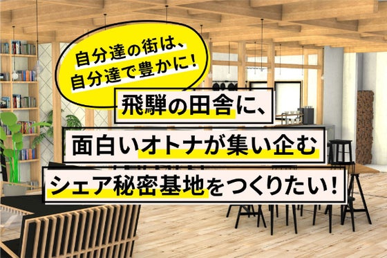 空き家をみんなでリノベーションして、飛騨で暮らす人達が楽しめる遊び場を作るプロジェクトです。飲食営業やコリビング、コワーキングの機能も備えることで、飛騨の人たち...