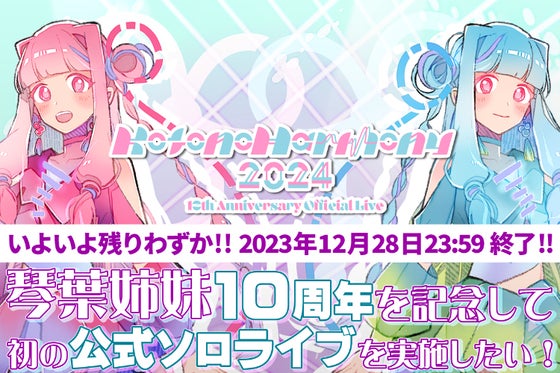 2024年4月は琴葉姉妹が誕生して10周年!10周年を記念して、初公式ソロライブ「Kotono Harmony 2024」の実施に挑戦するプロジェクトです。新~...