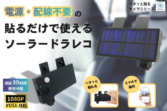 “ペタッ”と貼るだけで設置できるPeta Cameシリーズ!ソーラー電池付きのドラレコでフロントガラスに貼ったまま充電!だから電源も配線も不要!ソーラー充電して...