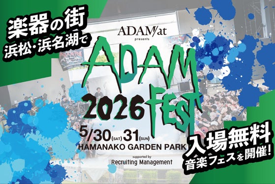 2026.5/30.31 静岡県浜名湖ガーデンパークで開催される入場無料の野外フェス「ADAM FEST 2026 」