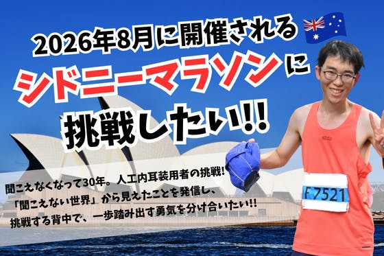 2026年8月に開催されるシドニーマラソンへの挑戦を決意しました!現地や大会の様子をお届けするものやユニフォームのスポンサー権などをリターンにしています!僕の人...