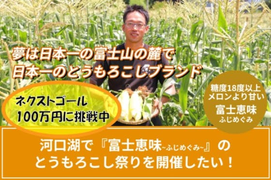 糖度18度以上、メロンより甘い河口湖ブランドとうもろこし『富士恵味~ふじめぐみ~』のとうもろこし祭り「富士恵味フェス」を河口湖で開催したい!このイベントを通じ富...