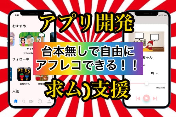 昔話やオリジナルアニメ(漫画動画等)にアフレコできる。しかも、台本無しなので全てアドリブ。 そのため、様々なセンスが問われます!ネタ系も良し、ガチ系も良しです◎...