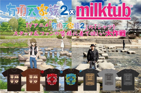 大好評の内に放送を終えたTVアニメ「有頂天家族2」のオリジナルデザインTシャツを当作品の主題歌を務めたmilktubが製作し、購入数に応じてアニメ制作スタッフの...