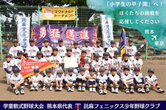 今年の8月に東京にて開催される高円宮賜杯第44回全日本学童軟式野球大会マクドナルド・トーナメントに熊本県代表として出場することになりました。移動費、宿泊費にて多...