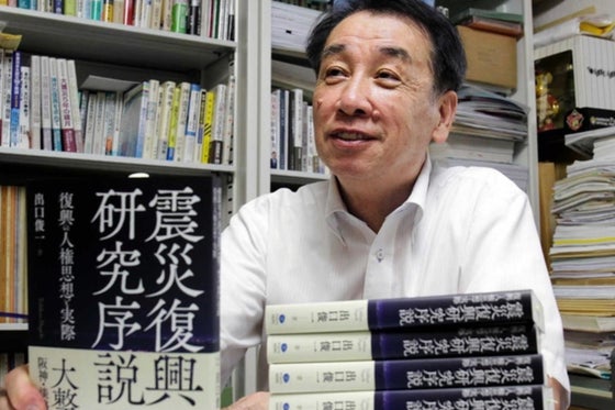 出口俊一(でぐち としかず) 1948年 兵庫県尼崎市生まれ 1971年 関西大学法学部法律学科卒業 20年余、尼崎市内の3小学校 (武庫東小、塚口小、名和小)に勤務。その後、立命館大学経済学部 (2004 年度)、阪南大学(2004年度~17年度)、 神戸松陰女子学院大学(2011年度~13年度)。 現在、兵庫県震災復興研究センター事務局長(1995年1月~)、関西学院大学災害復興制度研究所 研究員 (2005年度~) 『人権教育研究序説』 社団法人兵庫部落問題研究所、1993年 『教育運動の論理』 兵庫県労働運動総合研究所、 1993年 『大震災 100 の教訓』 (編著) クリエイツかもがわ、 2002年 『「災害救助法」 徹底活用』 (編著) クリエイツかもがわ、 2012年 『大震災20年と復興災害』 (編著) クリエイツかもがわ、 2015年 『神戸百年の大計と未来』 (共著) 晃洋書房, 2017年 『震災復興研究序説 復興の人権思想と実際』 クリエイツかもがわ、 2019年など