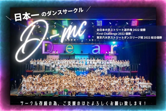 D-mcは今年32年目を迎えました。ダンス公演の成功、そしてサークルを次の世代にと繋げていくために、ご支援のほどよろしくお願いいたします!!