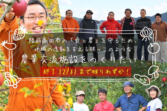 陸前高田市の農業を守っていくため、新たな拠点として、農業交流施設を設けます。地域の食と農を自分たちで守るため、クラウドファンディングに挑戦します。交流施設の小さ...