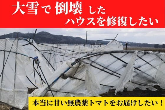 もりもりファームでは、『完全農薬不使用』『完全化学肥料不使用』のトマト・ぶどうを育てています。コロナの影響により売り上げ減少のところ、今回豪雪によりトマトのハウ...