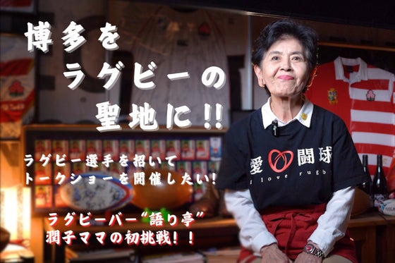 ラグビーファンを増やす目的でファン歴50年の潤子ママが始めたラグビーバー【語り亭】にラグビー選手やラグビージャーナリストの方々をお招きし、トークショーやパブリッ...