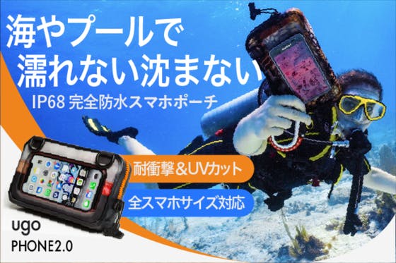 防水防塵等級IP68の完全防水スマホポーチ。水に浮くのですぐに見つかる。全スマホサイズ対応。ポーチに入れたままスマホのタッチパネルが操作できる窓付。水中での写真...
