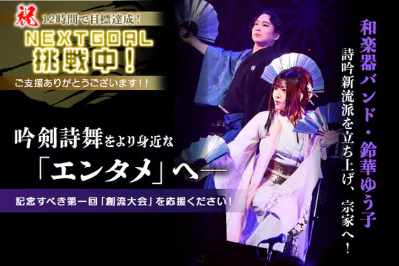 【御礼】たくさんのご支援を頂き、目標額を達成いたしました!!鈴華ゆう子の新流派・創流記念大会は、伝統を「難解で敷居が高い」として閉じ込めるのではなく「エンターテ...