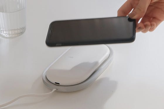 非常にスマートでスタイリッシュな外観です。通常はデスク上で使い外出時はバッテリーユニットのみを持ち出すモバイルバッテリーとして使う事ができます。ワイヤレスと ケ...