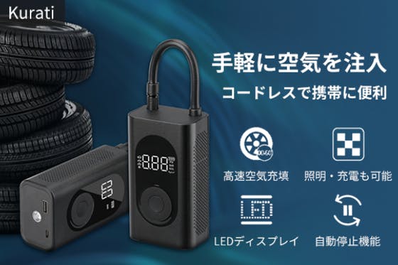 「Kurati」は空気入れ・照明・充電という3つの機能を搭載しています。タイヤやボールなどの空気入れをする際に大活躍します。操作が簡単で、自動停止機能も備わり、...