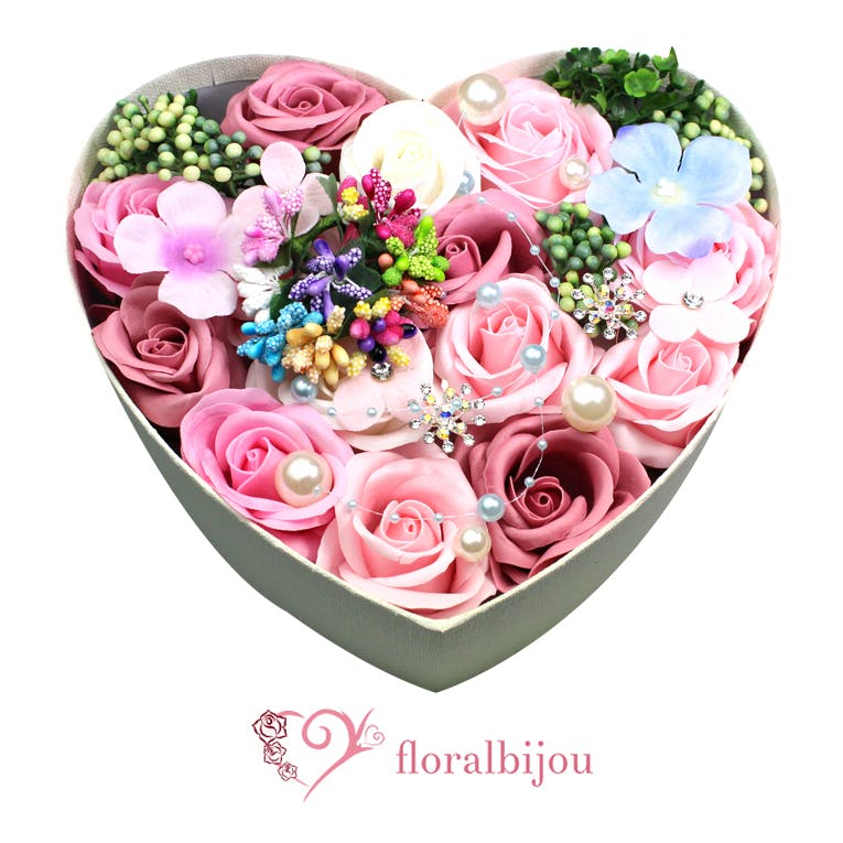 花が大好きです。四季折々の花が庭に咲くのも素敵ですが、ずっと花に囲まれていたい!そんな思いを叶えてくれるソープフラワーに初めて出会ったのは今から20年ほど前になります。花と思っていたものが石鹸だったとは!その驚きは今でも覚えています。 友人にアレンジしたソープフラワーを贈ってとても喜ばれたのをきっかけに、ソープフラワーの世界へのめりこんでいきました。得意なアレンジはソープフラワーにキラキラとした飾りをミックスすることです。プレゼントされた方が笑顔になる、そんなソープフラワーを作るのを目標に日々制作しています。
