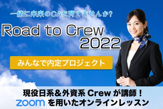 先の見えない航空業界故に今から客室乗務員を諦めてしまうことは航空業界の損失です。そこで、22卒を対象に毎月2回の受験対策をZoomで行う「Rord to Cre...