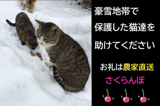 豪雪地帯で猫の保護活動をしています。雪の中、食べ物がなく助けを求めて来た猫達。これまでに50匹以上保護しました。 エサ代、医療費、避妊手術費用が必要です。 ...